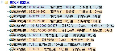完成設定後,可觀看畫面右方之車機與電門怠速時間設定值、引擎怠速時間設定值對應表,如下圖所示。