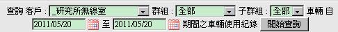 選定欲查詢群組之車輛及時段,按下"開始查詢"按鈕後,如下圖。